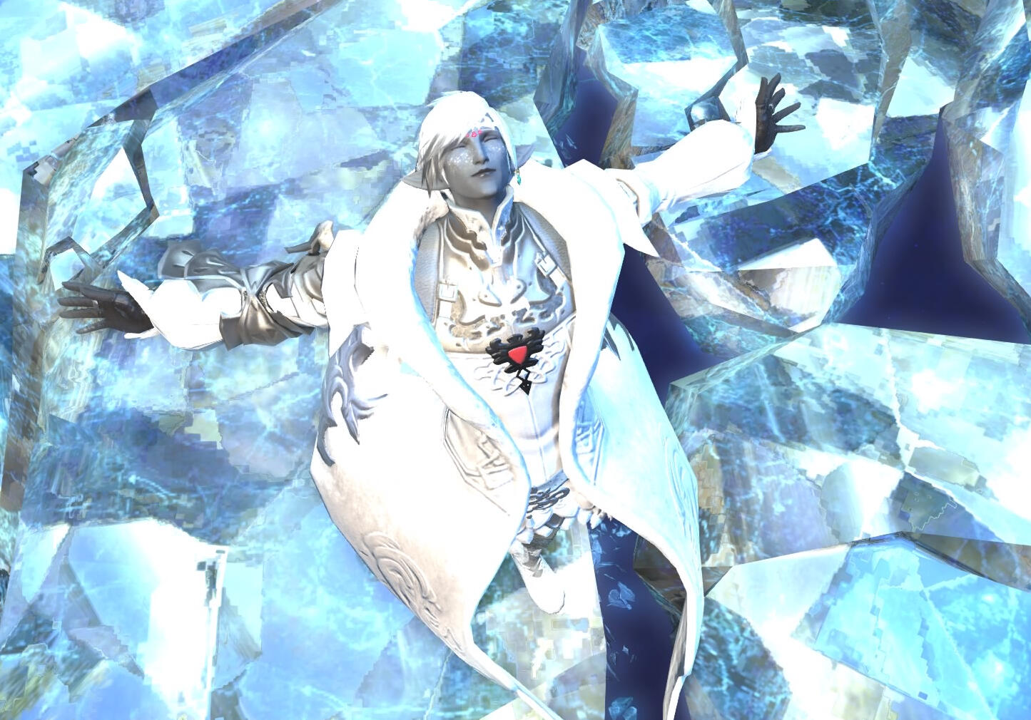 Aris had continued his travels to the Observatory tower in Coerthas and studied Eorzean history and arcane arts for that entire interim year, determined to be an adept caster and healer. He buried his nose in mountains of tomes and books and archives while the bitter cold surrounded the research tower, sitting by a fire for hours, taking endless notes. He would regularly travel back to Gridania to visit his mother, now his only surviving relative. Jeoffent’s small hut at Fallgourd Float now served as his private home and place of study. During the middle of the night, Aris had fallen asleep at his desk, and he experienced the strangest dream, in which he floated before a gigantic crystal of light that identified itself as Hydaelyn, and he was given a gift, and a request from her - the gift of heightened aetheric channeling and manipulation, and the request to aid those named the Warriors of Light.